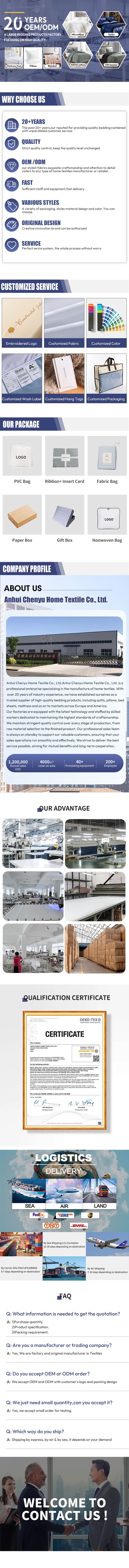 ♦ We are manufcaturer for home textile and we have been exporting our products to America and Europe for over 20 years, we have our own factory to produce comforters, mattress, pillows and blankets. We are highly professional and have stable supply capacity, of which the quality could meet your requirement.